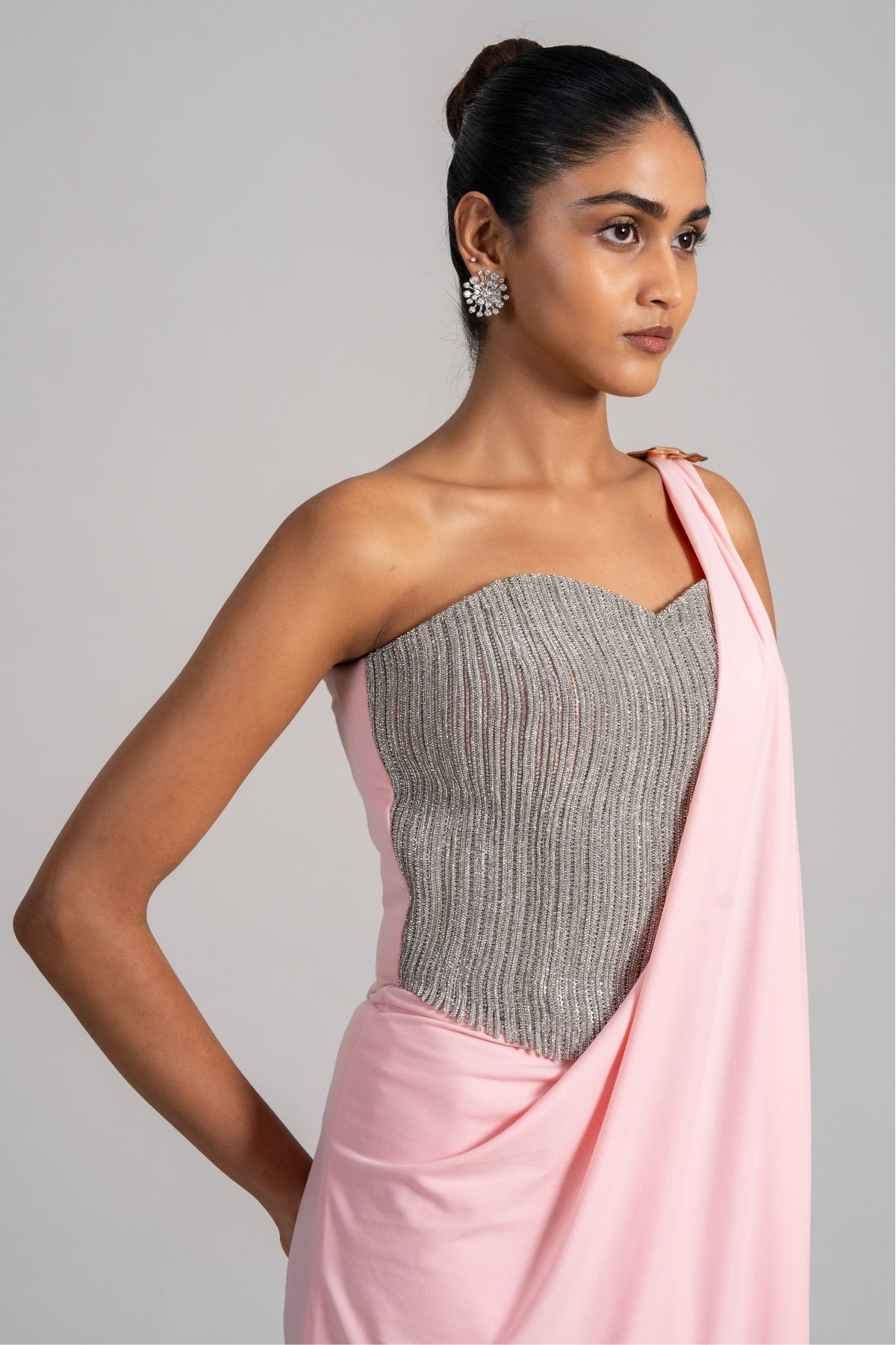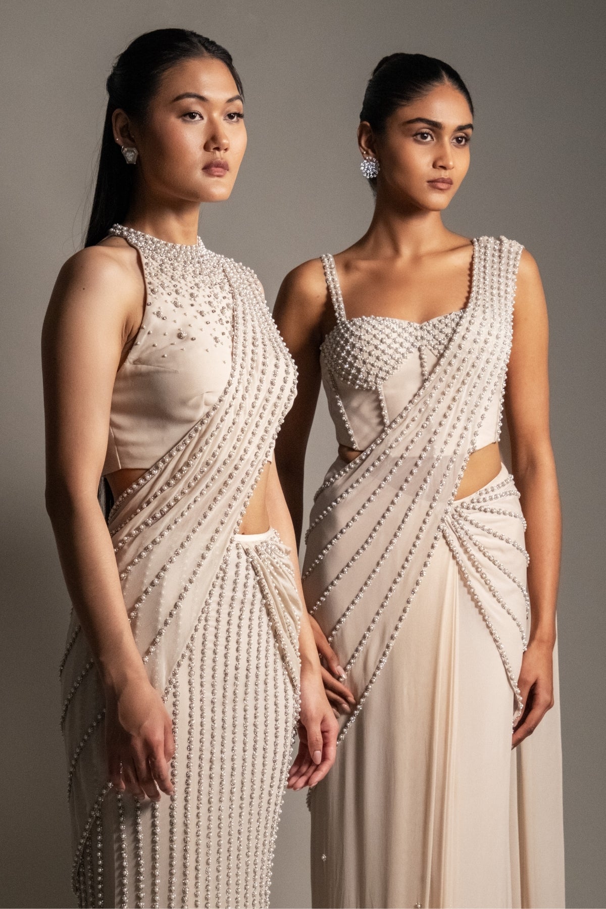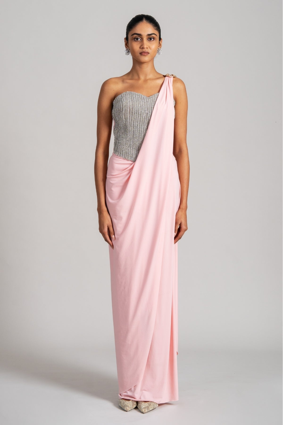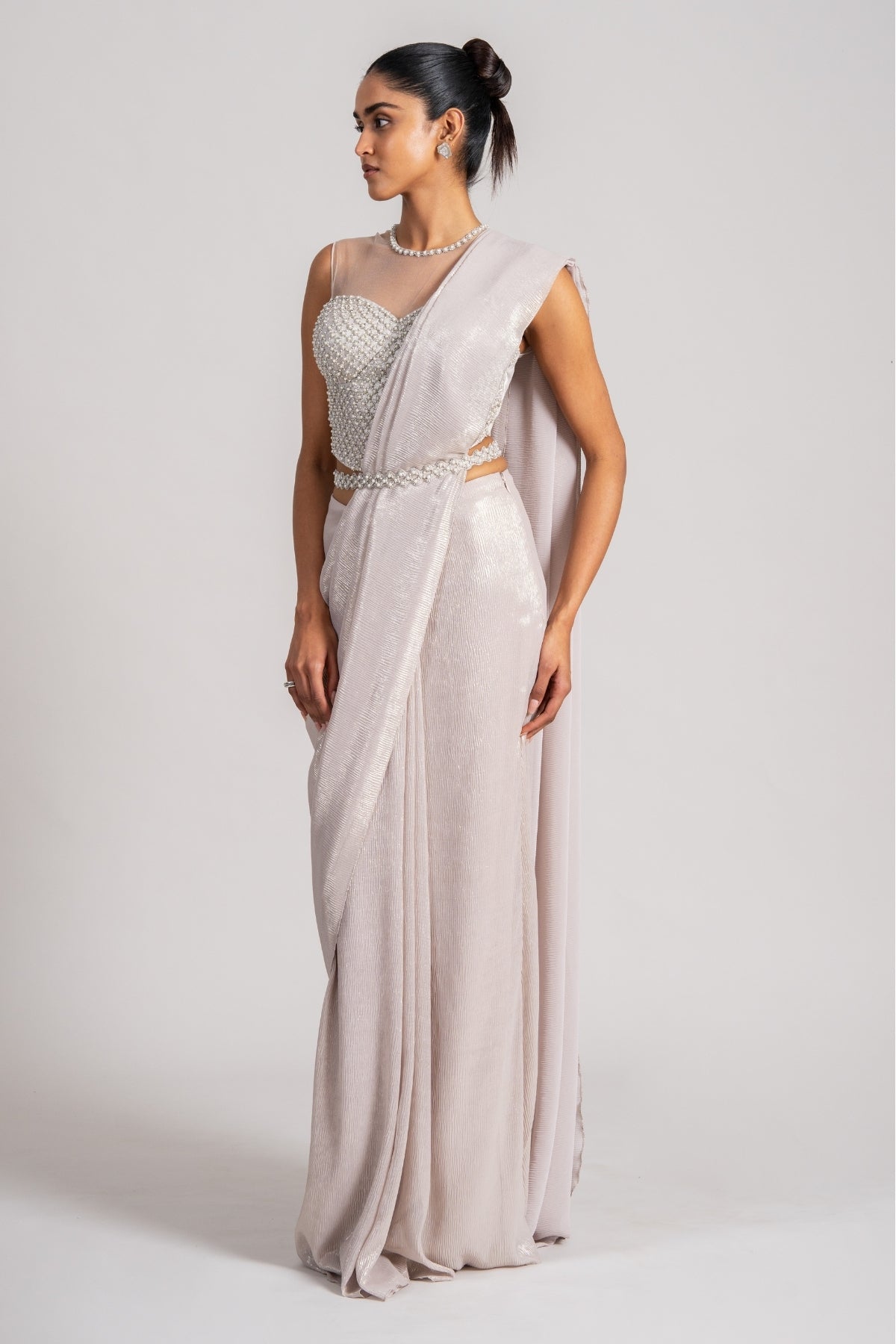PEARL CASCADE CORSET WITH SLEEK DRAPED SAREE